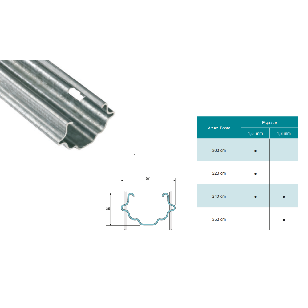- Perfil preparado para grandes cargas kilo/hectárea y grandes alturas de poste.