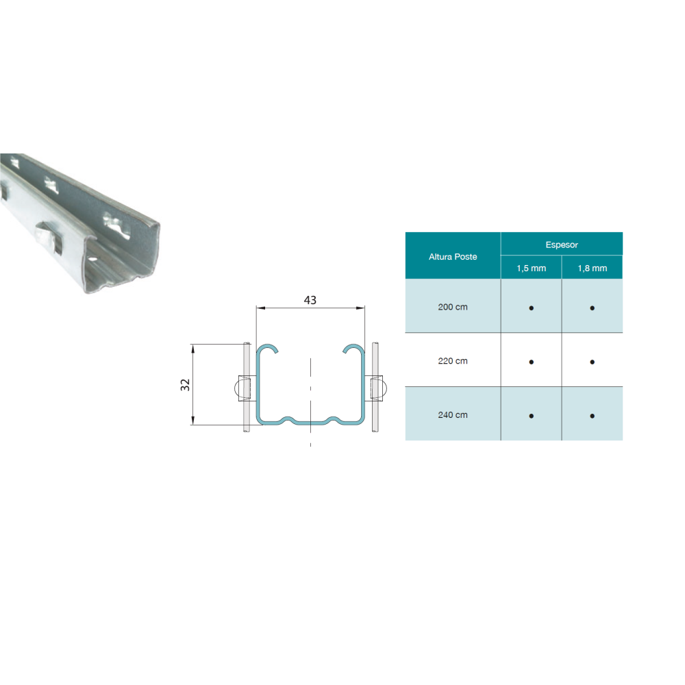 Poste Metálico Intermedio - Lengüeta Exterior | VIN-EX 50M 32/43
