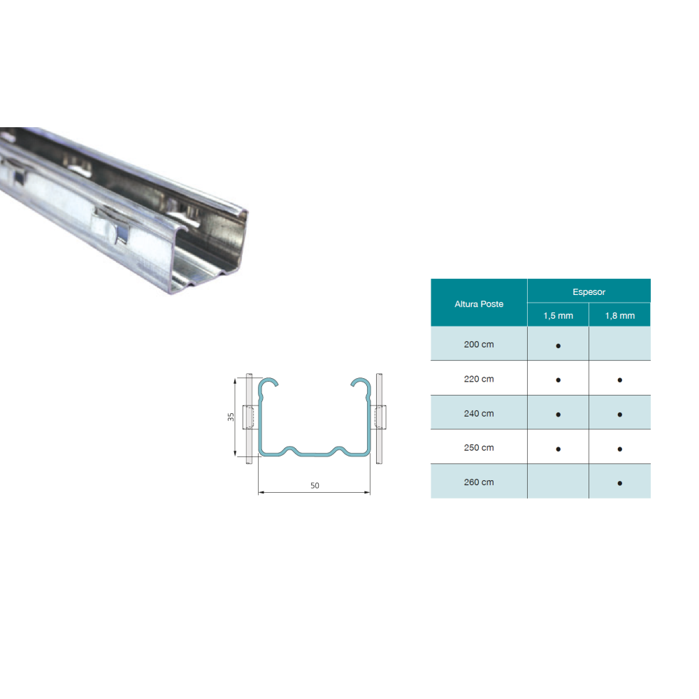 Poste Metálico Intermedio - Lengüeta Exterior | VIN-EX 50 Plus 35/50