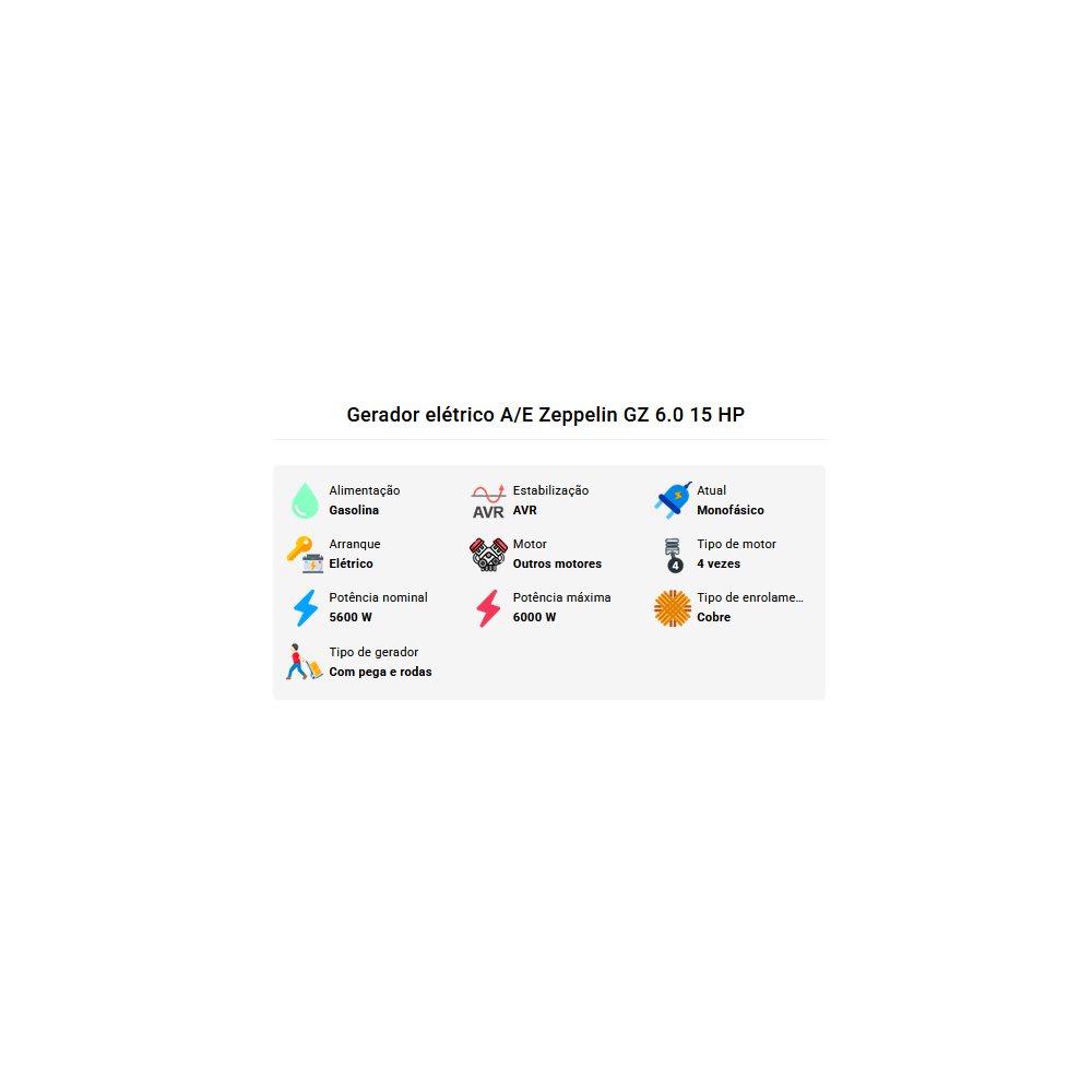 Gerador elétrico A/E Zeppelin GZ 6.0 15 HP