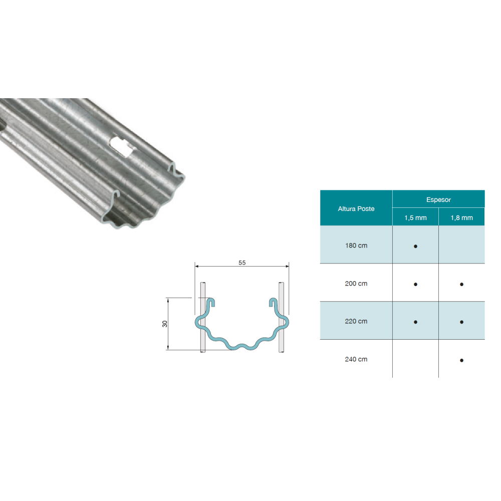 - Profilé préparé pour des charges importantes en kilo/hectare et des hauteurs de poteaux élevées.