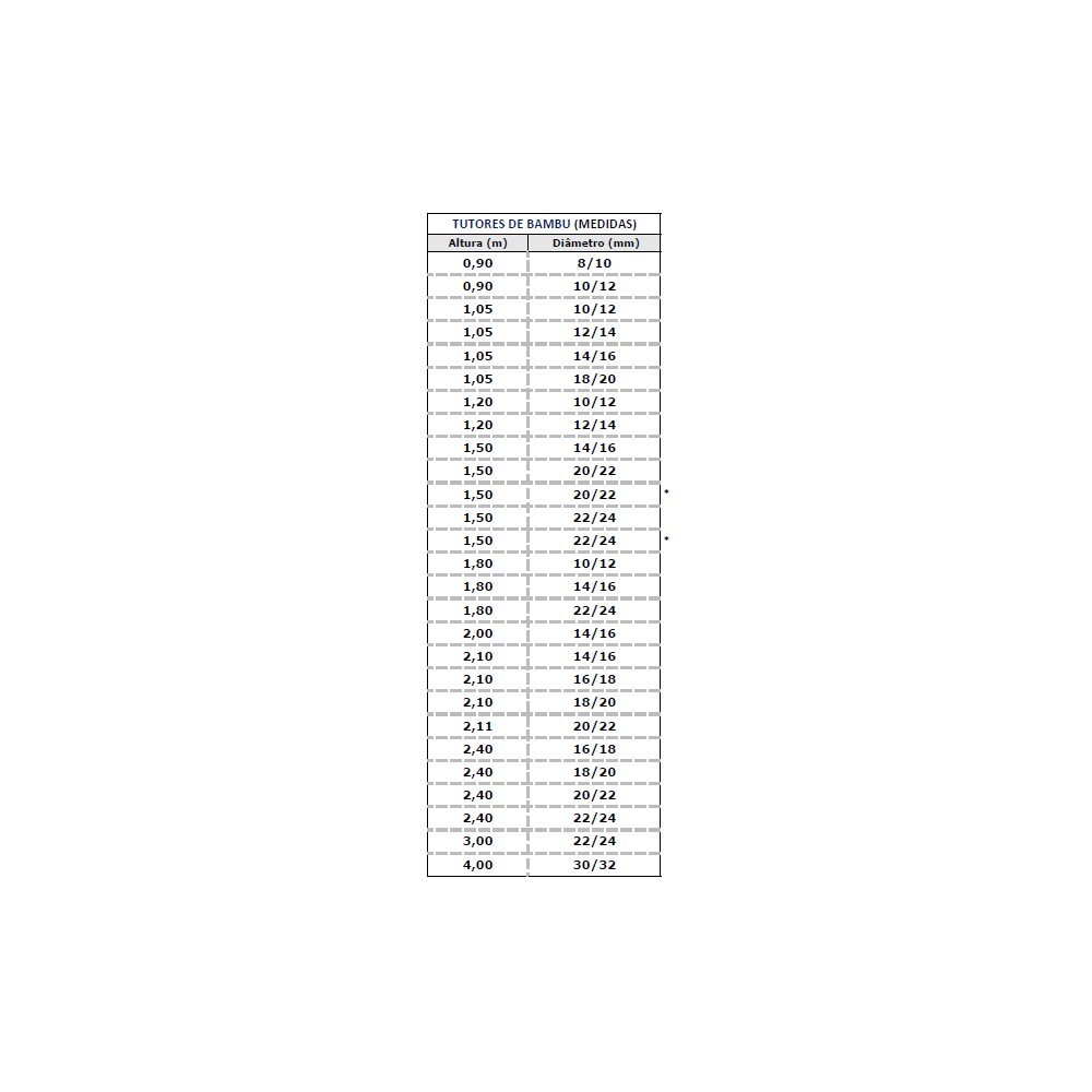 Disponibilizamos todos os tamanhos e diâmetros adequados para plantações ou trabalhos hortícolas e damos resposta a pedidos de tutores de diversos tamanhos, bem como de flowers sticks para viveiros. Os tutores de bambu são um elemento fundamental no crescimento da planta, permitindo um suporte e auxílio para um crescimento sustentado.